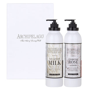 Give the gift of healthy, glowing skin with our Best Selling Body Lotion Set. As the seasons change, nourish and pamper dry skin with two of our best-selling body lotions - soothing Oat Milk and detoxifying Charcoal Rose. Each coveted formula contains a blend of skin-soothing natural ingredients and essential oil fragrance blends, leaving behind a fresh and light fragrance. Always Non-GMO and Paraben, Gluten, Phthalates, Artificial Color, and Cruelty-free. While supplies last.