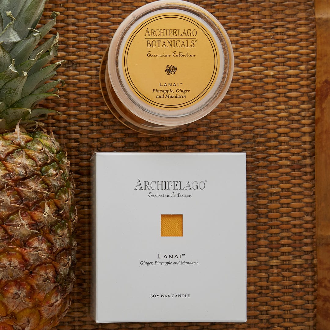 Be transported to your own Hawaiian Island with this alluring, Lanai Soy Candle. This sunny blend of Fresh Pineapple, Ginger, and Mandarin, gets its inspiration from the Island of Lanai....
