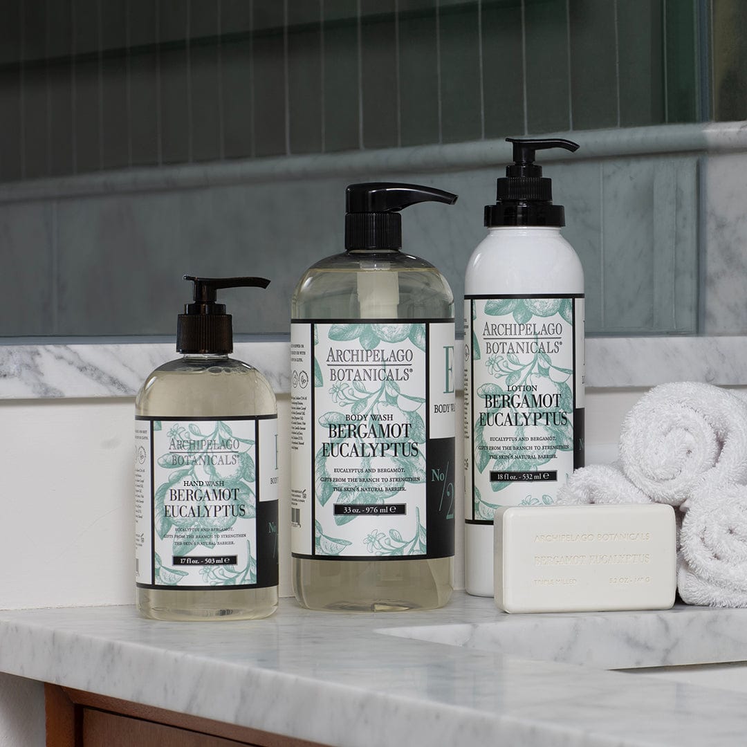 Eucalyptus and Bergamot. Gifts from the branch to strengthen the skin’s natural barrier.